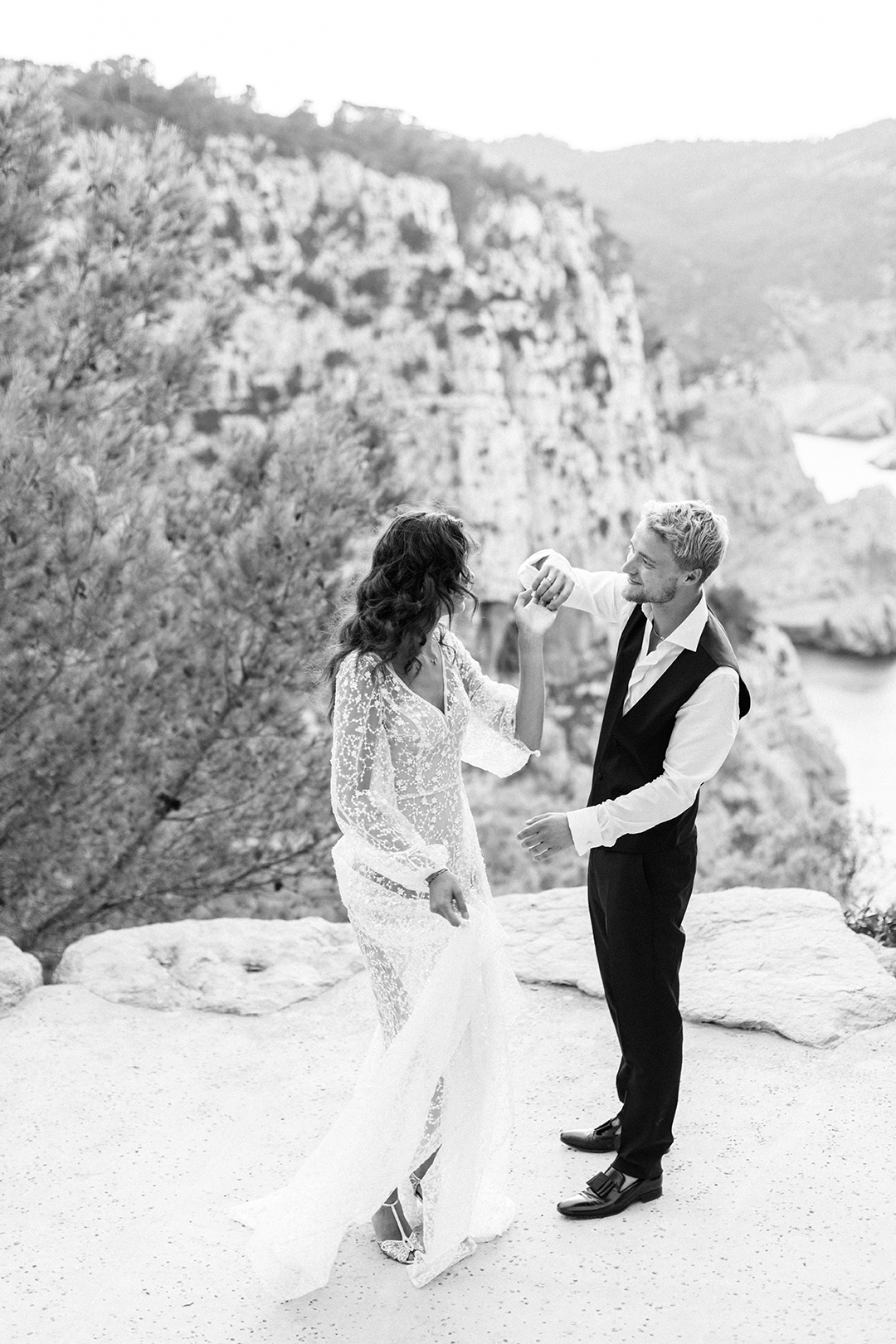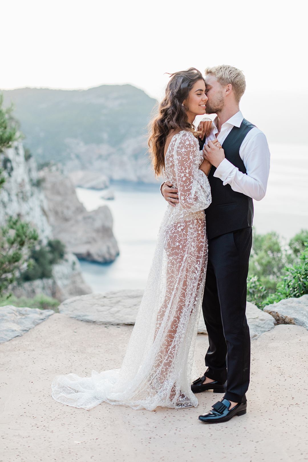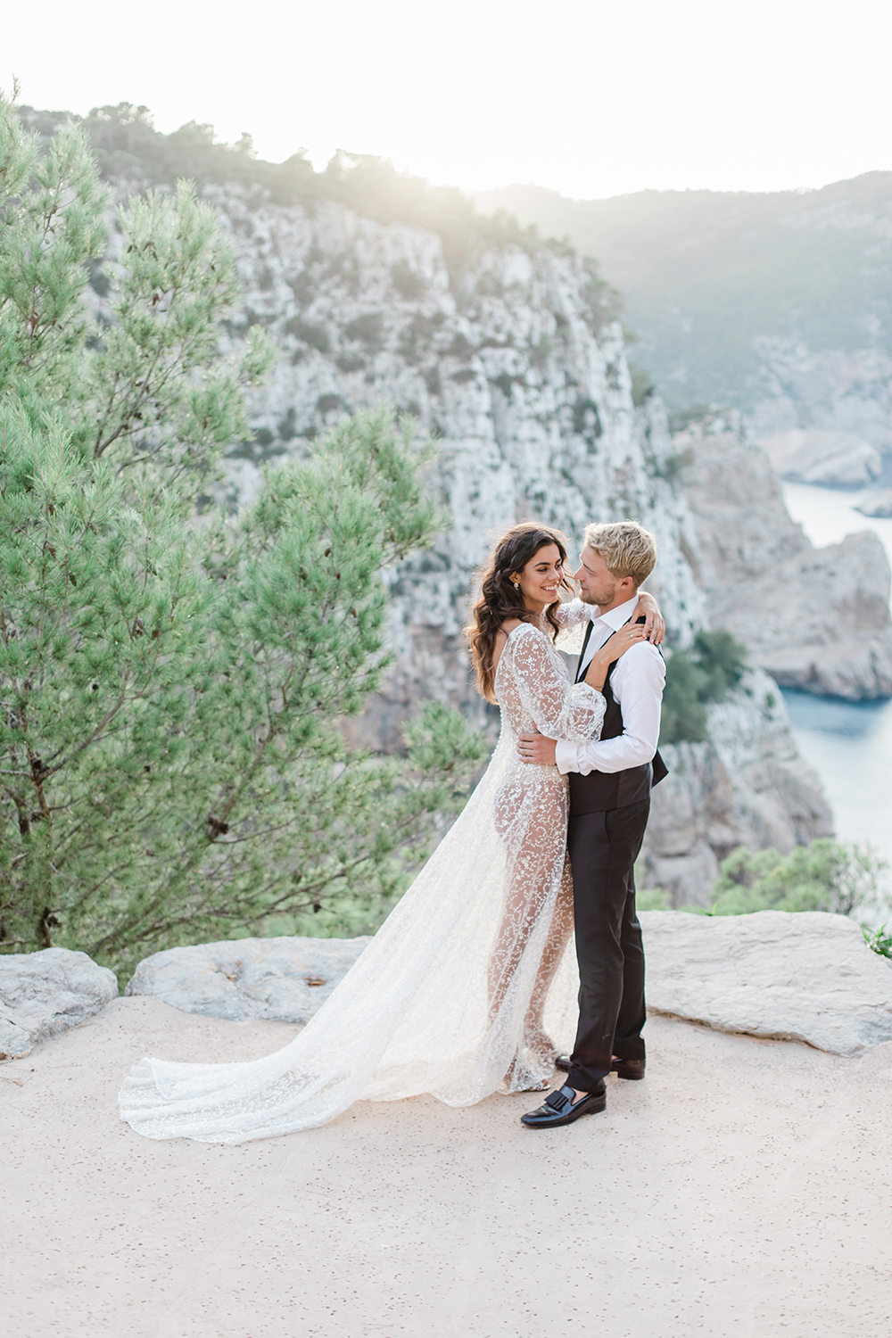 Location :: Punta Galera / Ceremony Location :: Hacienda na Xamena, Ibiza / Wedding Planner :: Trouwen met Nina @trouwenmetnina.weddingplanner / MUA :: Meta @Makemeup.ibiza.visagie.meta / Dress :: The Bridal Concepts Company (NL) / Suit :: J Ribas Moda Hombre (Ibiza) / Rings :: Amare Trouwringen